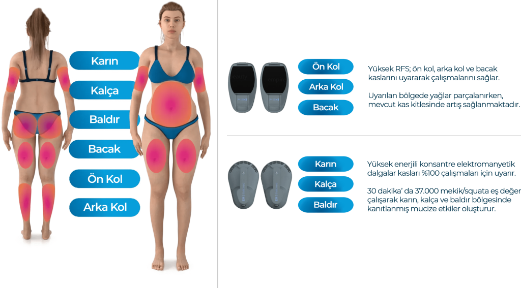 Yoğun Kasılmalar: Bu başlıklar, cildin altındaki kas dokusuna doğrudan ulaşan odaklanmış elektromanyetik enerji gönderir.